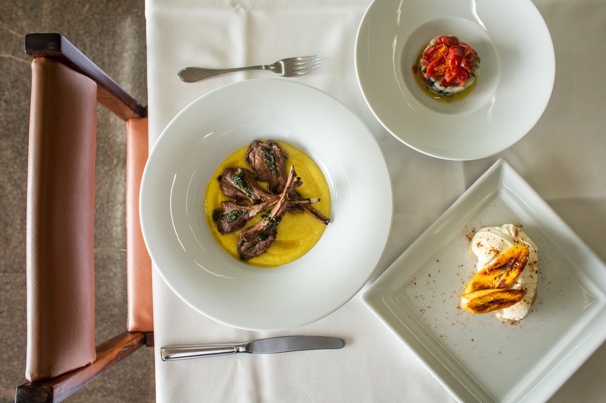Carré de cordeiro na brasa, aligot com queijo da Canastra e gremolata de menta fresca