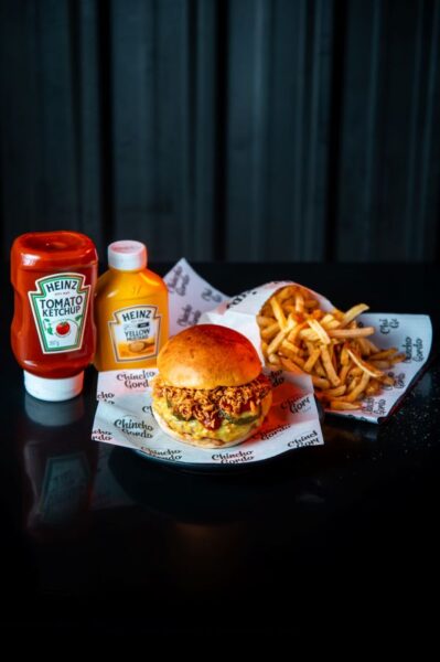 Chincheirão – Pão, carne, American cheese de mostarda, cebola crispy e Ketchup Tradicional Heinz Chincho Style.