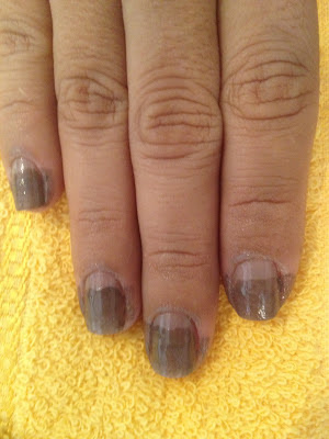 O próximo passo é o pulo do gato para o efeito: Pegue uma esponja, dessas meio triangulares de passar base, e pinte-a com o esmalte “do meio” (no caso, o Jackie).