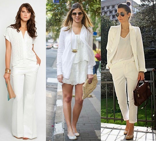 Muita gente tem dúvida em como usar um look total branco, pois acha que pode engordar ou ficar com cara de profissional da saúde, mas tem sim como usar esse look e ficar elegante e sim, deixar o visual super leve, super combinando com esse calor. Caso o branco pese para você, opte pelo off-white, creme, marfim etc. (lembrete: o branco em algumas pessoas não fica muito legal, pode deixar a pessoa pálida, envelhecer etc, isso tudo de acordo com a tonalidade da pele, olhos e cabelo)