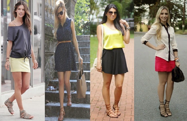 Se você tem as pernas grossas, é do tipo mignon e quer parecer mais alta, evite as gladiadoras com muitas amarrações e de cano longo, pois elas achatarão sua silhueta. Dê preferência para as de cano curto, com ou sem salto e use com short, saia e vestido.