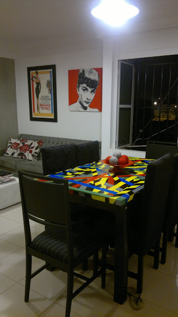 Quando me mudei, precisei cortar a minha mesa de jantar. Ela foi feita por um marceneiro da Torre de TV e tinha 1,40m x 1,40m. A minha sala nova não comportaria tais medidas e então decidi deixá-la com 70cm x 1,40m. Afinal, também não tinha grana para comprar outra mesa naquele momento.