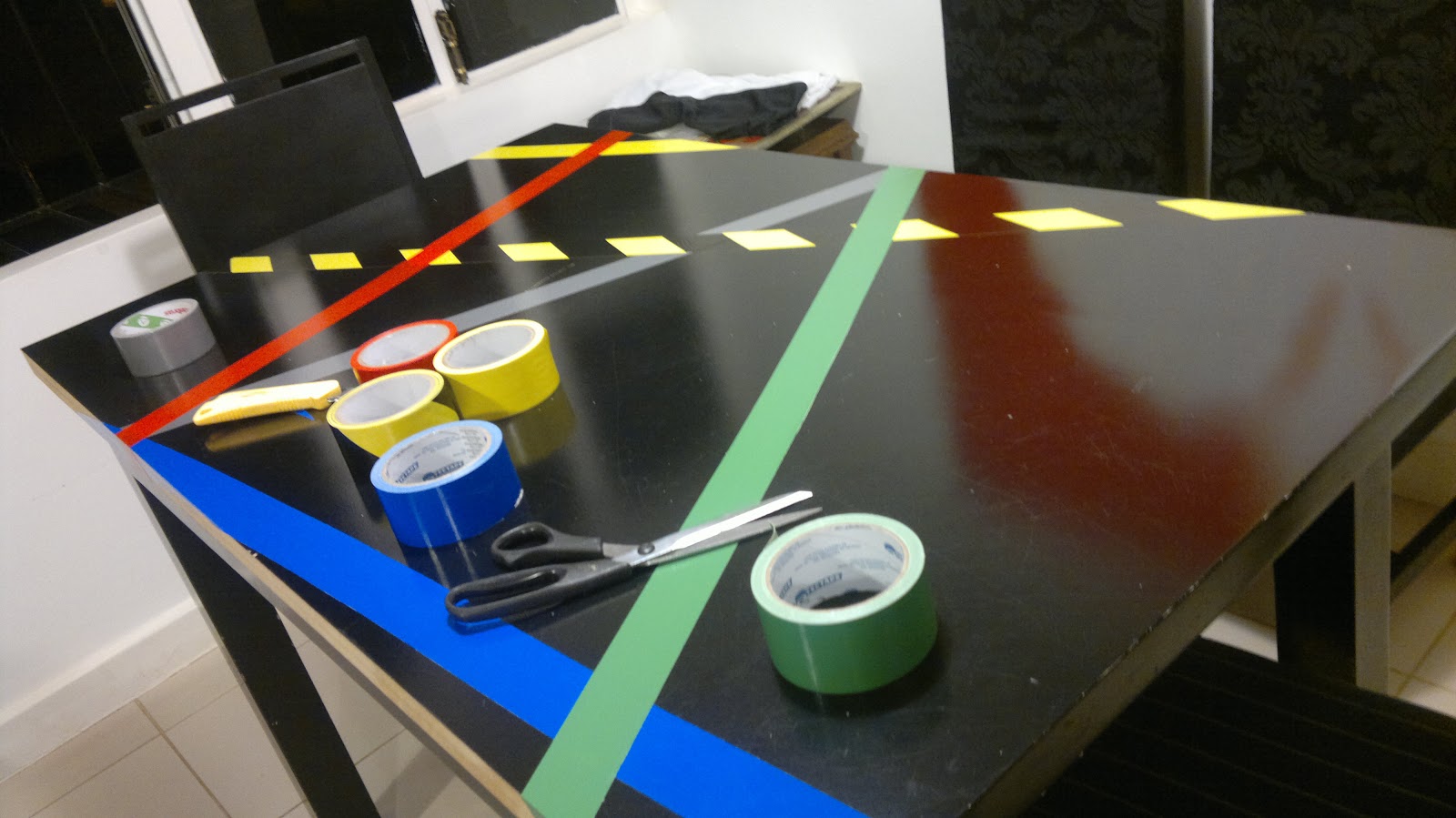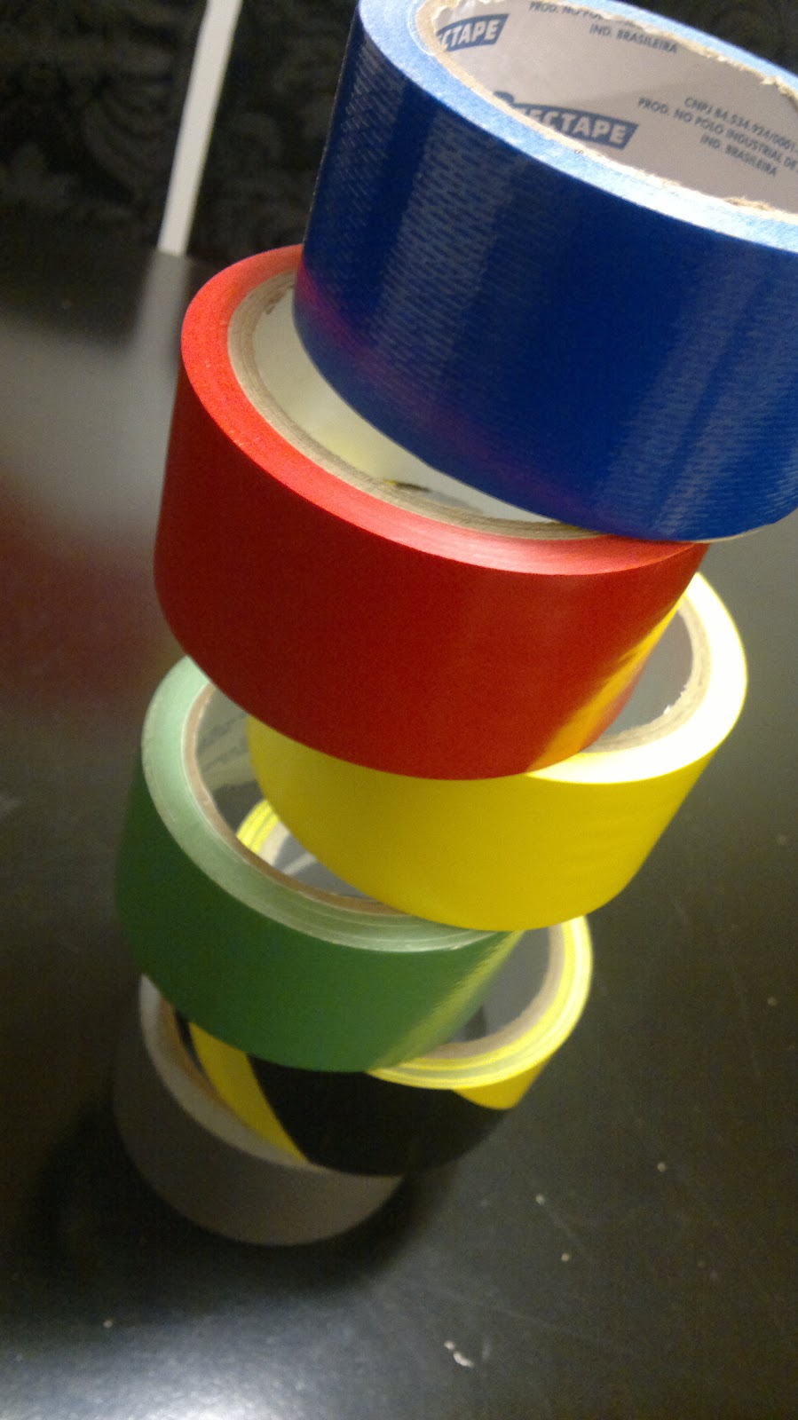 Essa ideia era tudo o que eu precisava. Numa passagem pela Kalunga, a mesma em que comprei o material para a geladeira, encontrei as fitas, inclusive aquela listrada de amarelo e preto (é a que eu mais amo!).