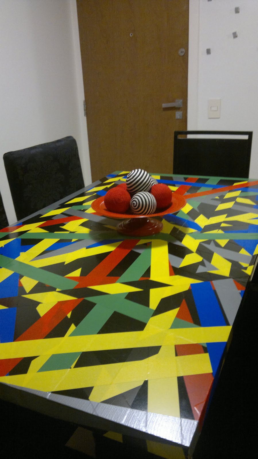 Então foi só chegar em cada e colocar o plano em prática, com a ajuda da minha filhota. Além das fitas, usei apenas uma tesoura para cortar os pedaços.