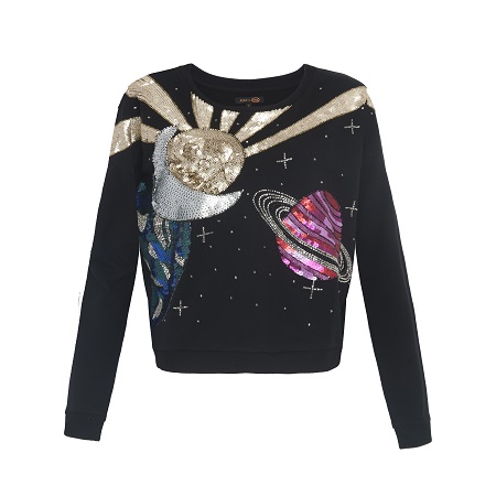 Elas são experts em bordados feitos à mão, com muito paetê, pedras e miçangas. Embora tenham detalhes luxuosos (leia-se estampas de estrelas, luas, arco-íris, frases e planetas), as peças criadas pela dupla são bem confortáveis, produzidas em malha, veludo, moletom e couro ecológico.