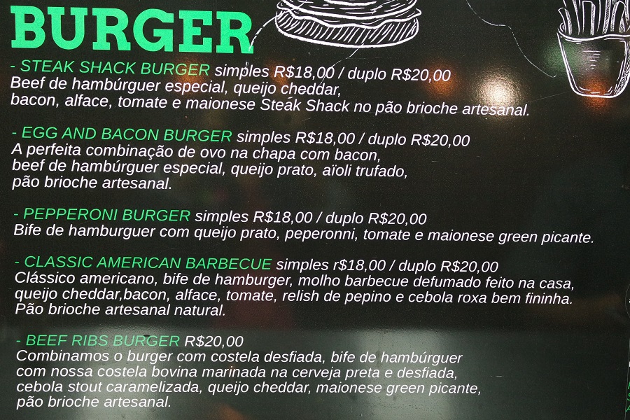 Eu fui lá provar em primeira mão a novidade. O foodtruck de Marcello vende sanduíches, claro. Eles têm discos de 90g de carne, grelhados na chapa. O Classic American Barbecue vem com um ou dois hambúrgueres, mais cheddar, bacon, alface, tomate, relish de pepino, cebola roxa, molho barbecue defumado caseiro e brioche artesanal. Custa R$ 18 (simples) ou R$ 20 (duplo).