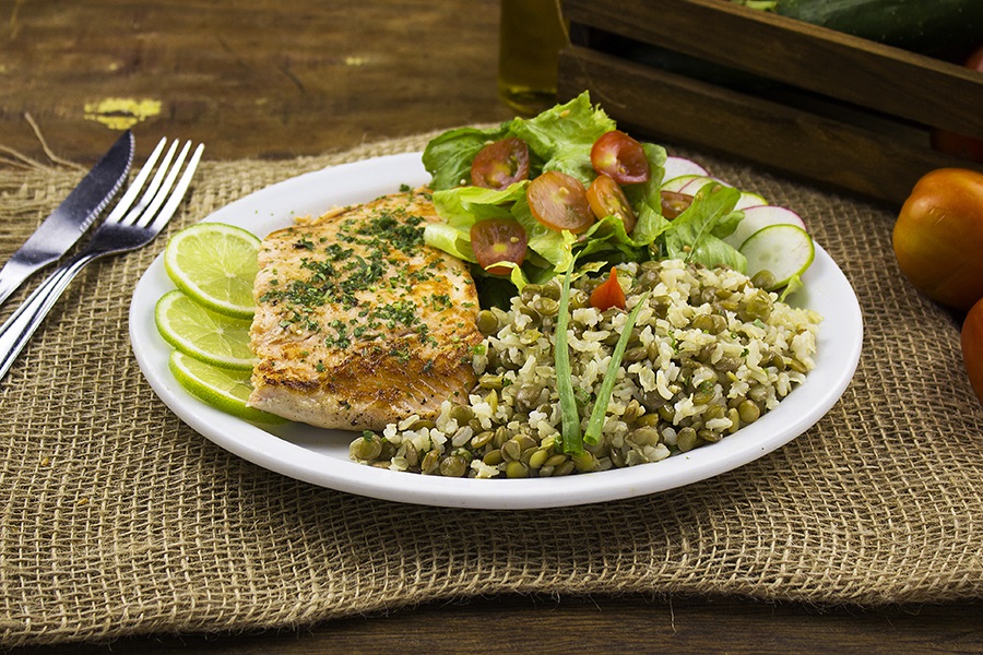 Na quarta, tem filé mignon grelhado com purê de cará e salada verde, mais cebola roxa, damasco, queijo frescal, amaranto, gergelim e castanhas. O prato tem pouco carboidrato e não contém glúten nem lactose. Para a quinta-feira, a casa reservou o salmão grelhado com arroz integral e lentilha, salada de folhas verdes, acelga, tomate cereja, pepino, rabanete, quinoa e castanhas. Na sexta, a atração é a tilápia grelhada com purê de banana da terra e brócolis, mais couve-flor, abóbora e cenoura refogados com gergelim. Ambos são glúten e lac free.