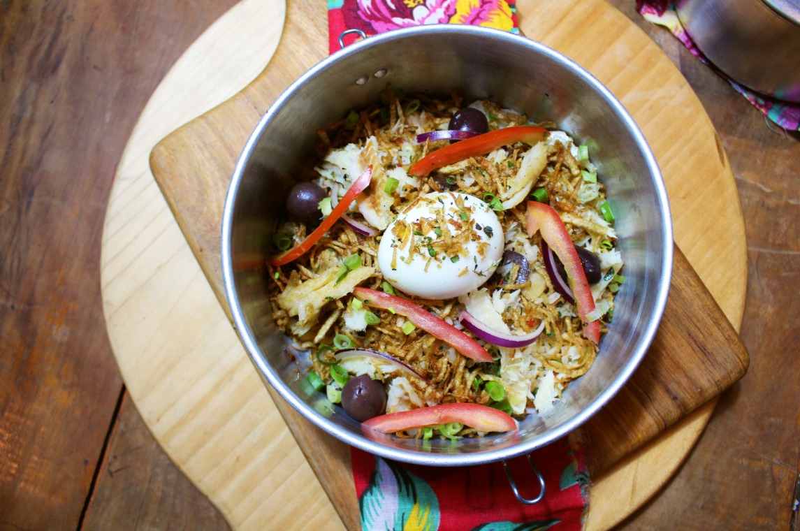 Arroz de bacalhau com ovo poché e batata palha – R$ 29,80