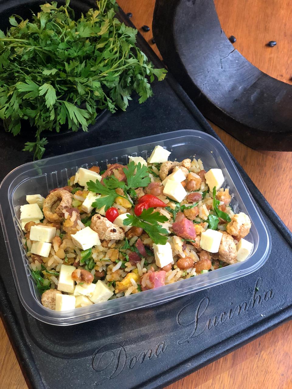 Arroz cremoso com frango e ora-pro-nobis – R$ 26,00 serve 2 pessoas